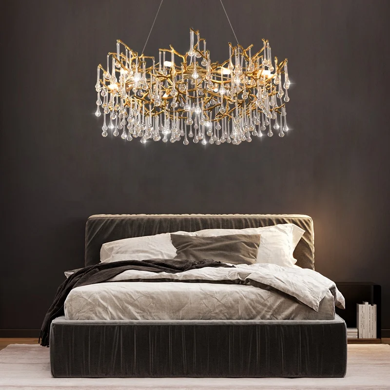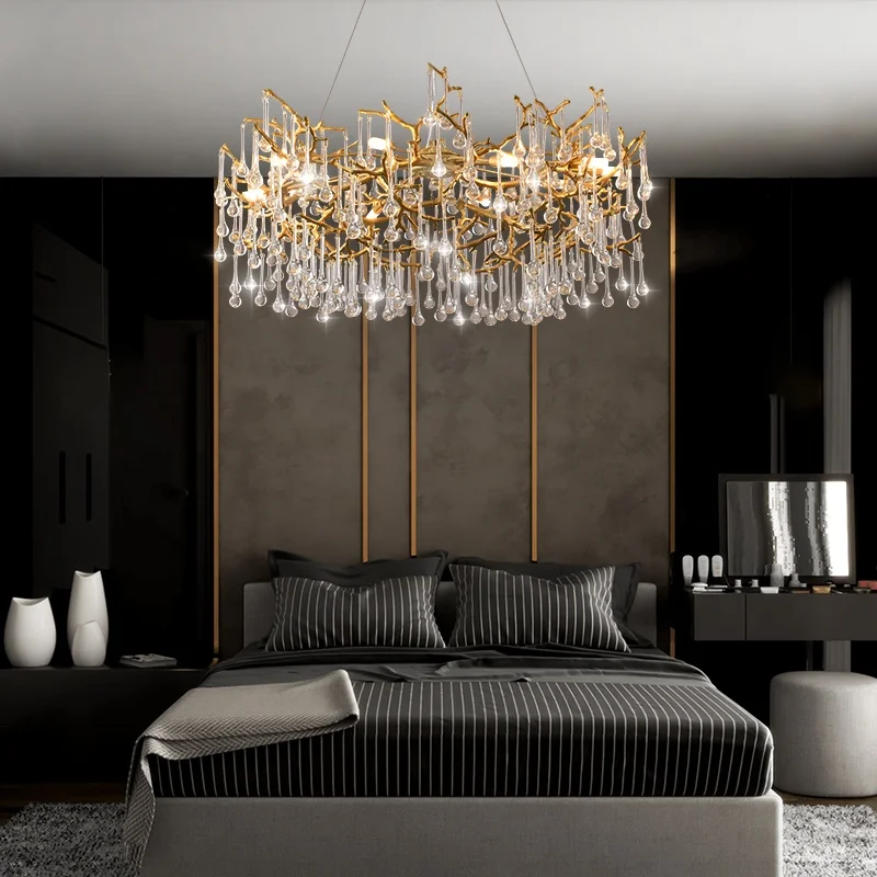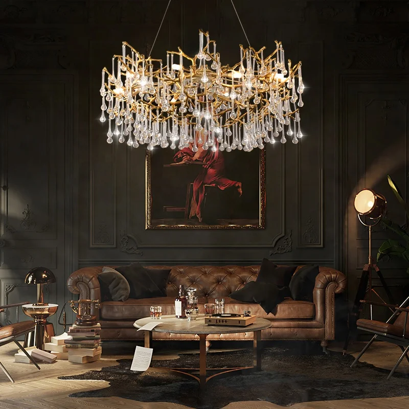 23.6 in Stock New American Country Flip Sand Aluminum K9 Crystal Living Room Light for Home Store Hotel Chandelier
