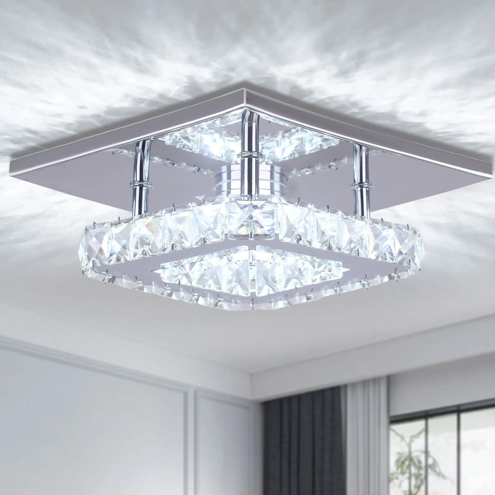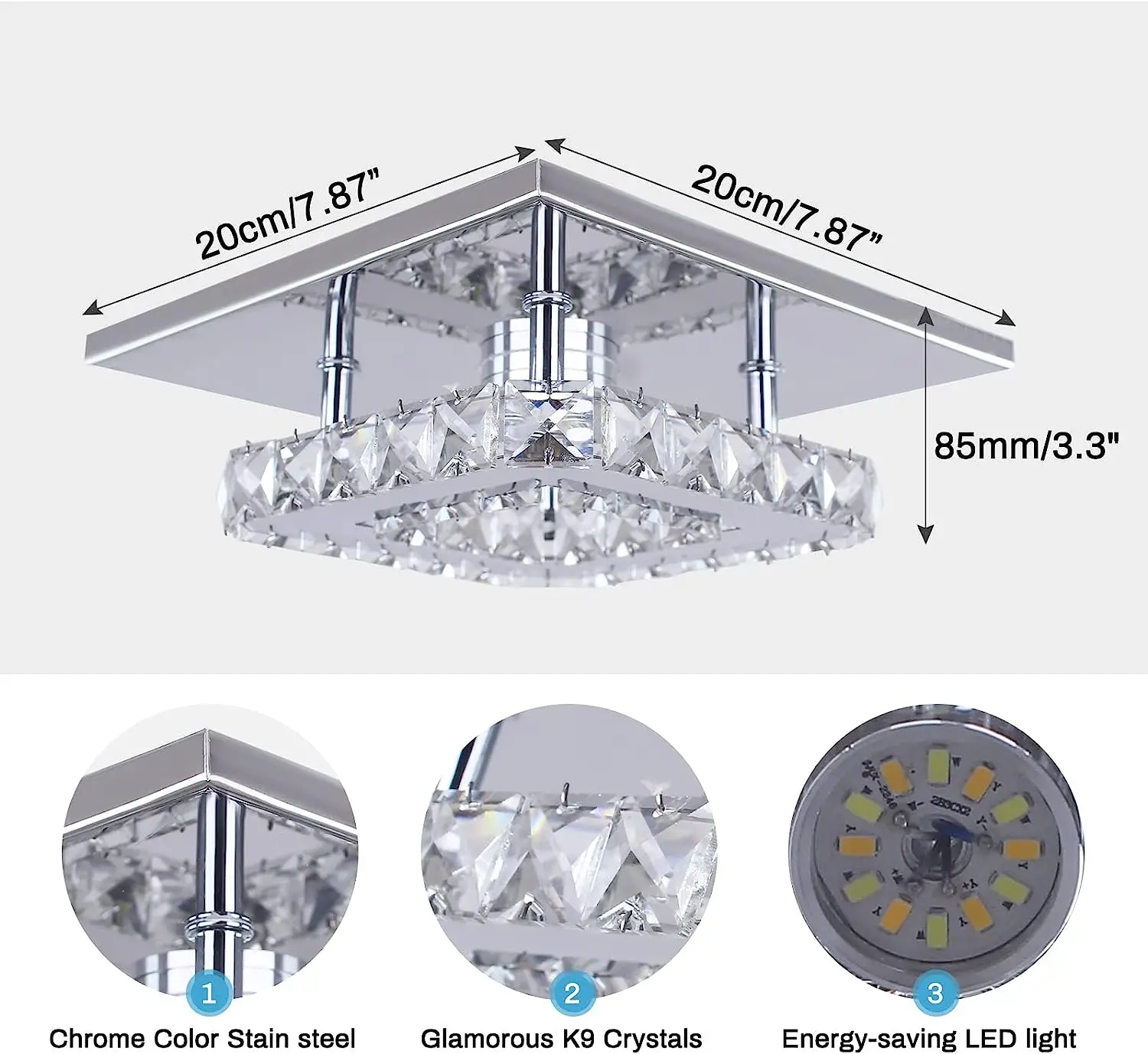 7.87” Nordic Style Crystal Pendant Light Modern LED Ceiling Lights for Living Room and Bathroom Simple Elegant Lighting